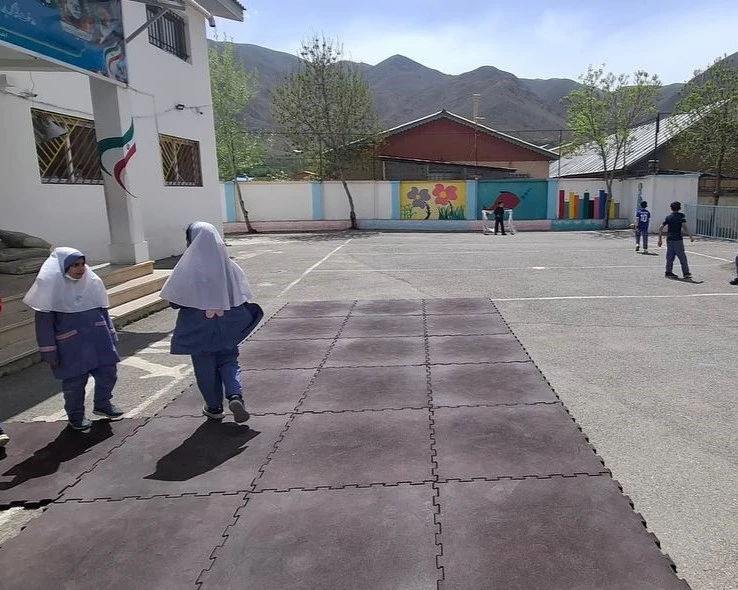 اجرای ۴۵۰ متر مربع کفپوش گرانول پازلی توسط شرکت آسیم در مدرسه شهیدان داودی و حسینی شهر بلده